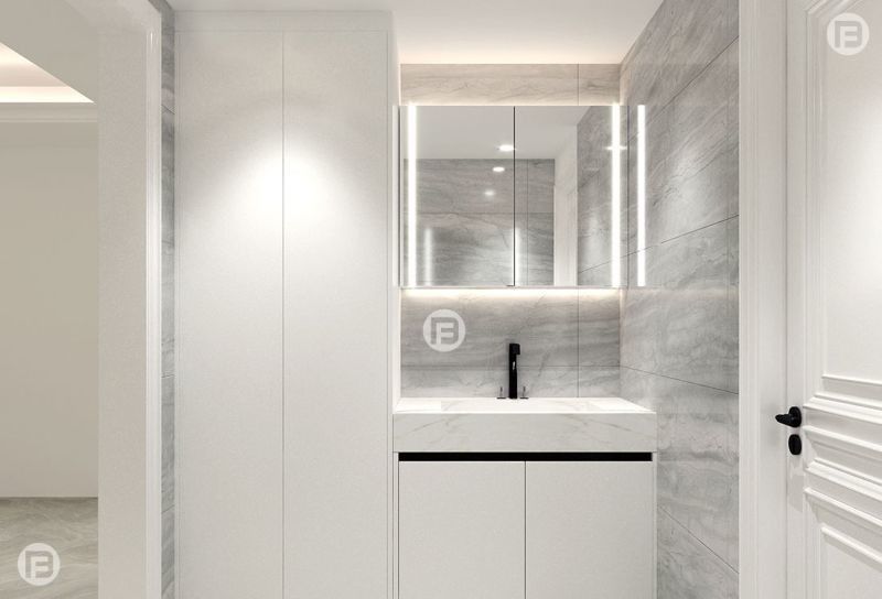 इस बाथरूम वैनिटी को एक सामान्य SKU के बजाय एक डिज़ाइन-आधारित प्रणाली के रूप में प्रस्तुत किया गया है। यह प्रीमियम आवासीय परियोजनाओं के लिए एक अधिक सुसंगत दृश्य पहचान बनाने के लिए सफेद रंग के साथ प्रीमियम स्टेनलेस स्टील कैबिनेट संरचना का उपयोग करता है।