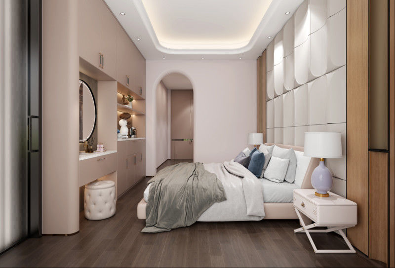 | डिजाइन की विशेषताएं | बिस्तर के पैर में अलमारी एक वैनिटी से लैस है, जिसमें रखने के लिए एक खुला शेल्फ डिजाइन है |