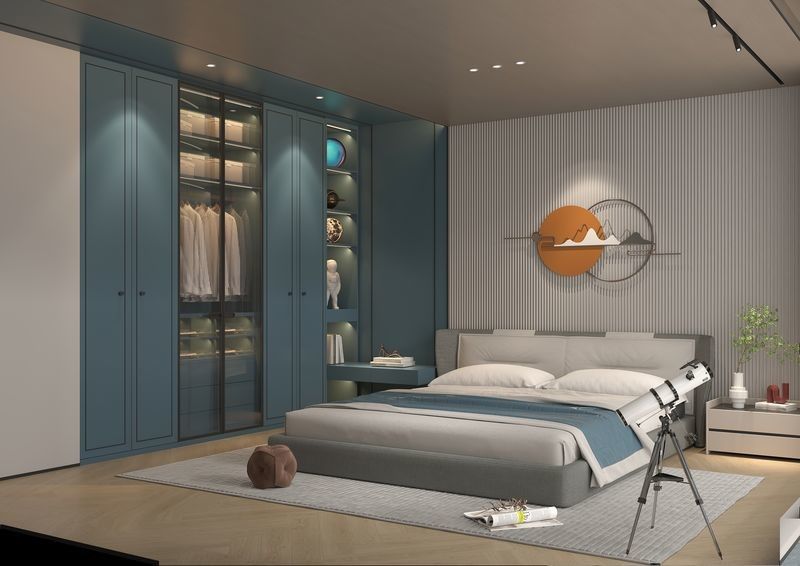 यह वॉर्डरोब एक सामान्य SKU के बजाय एक डिज़ाइन-आधारित प्रणाली के रूप में प्रस्तुत किया गया है। यह प्रीमियम आवासीय परियोजनाओं के लिए एक अधिक सुसंगत दृश्य पहचान बनाने के लिए ग्रे / नीला रंग स्टेनलेस स्टील कैबिनेट संरचना के साथ उपयोग करता है।