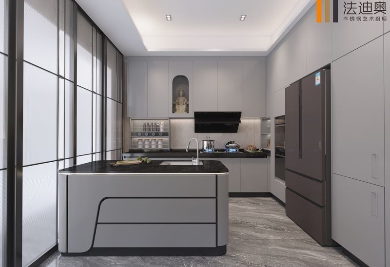 यह रसोई कैबिनेट एक सामान्य SKU के बजाय एक डिजाइन-निर्देशित प्रणाली के रूप में प्रस्तुत किया गया है।यह प्रीमियम आवासीय परियोजनाओं के लिए एक अधिक संकल्पित दृश्य पहचान बनाने के लिए स्टेनलेस स्टील कैबिनेट संरचना के साथ मिलकर ग्रे का उपयोग करता है.