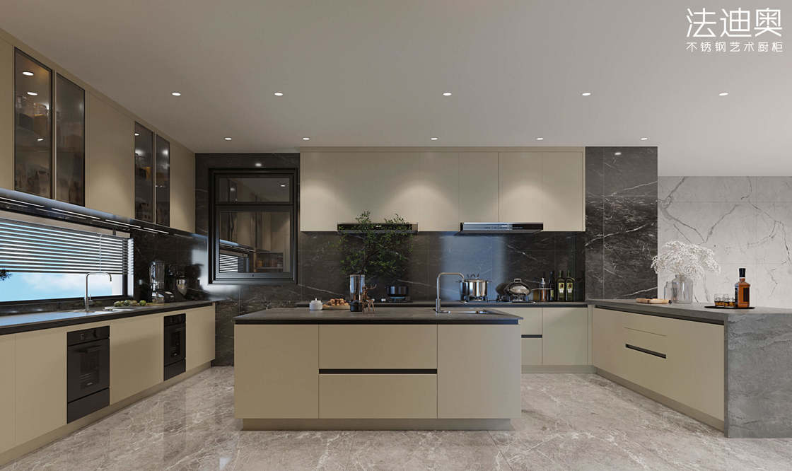 यह रसोई कैबिनेट एक सामान्य SKU के बजाय एक डिजाइन-निर्देशित प्रणाली के रूप में प्रस्तुत किया गया है।यह प्रीमियम आवासीय परियोजनाओं के लिए एक अधिक संकल्पित दृश्य पहचान बनाने के लिए स्टेनलेस स्टील कैबिनेट संरचना के साथ एक नियंत्रित खत्म पैलेट का उपयोग करता है.