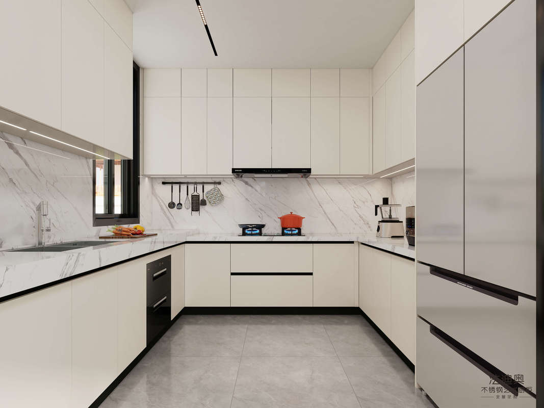| उपकरण एकीकरण | अंतर्निर्मित इंडक्शन कुकटॉप, स्टेनलेस स्टील रेंज हुड, स्मार्ट ओवन और वाइन कूलर |