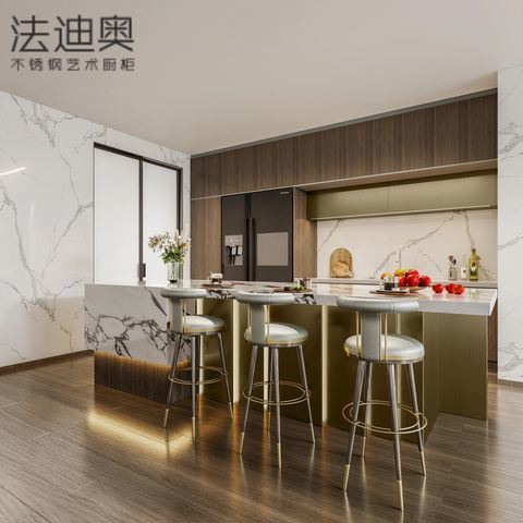 घर > उत्पादों > आधुनिक रसोई कैबिनेट > मार्बल स्टेनलेस स्टील किचन कैबिनेट विथ बार आयलँड