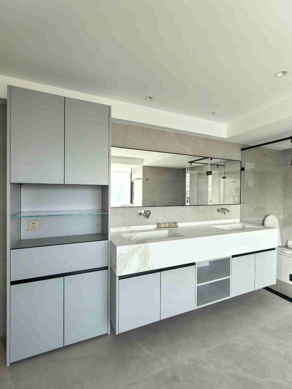 यह बाथरूम वैनिटी एक सामान्य SKU के बजाय एक डिजाइन-निर्देशित प्रणाली के रूप में प्रस्तुत की जाती है।यह प्रीमियम स्टेनलेस स्टील कैबिनेट संरचना के साथ ग्रे का उपयोग करता है ताकि प्रीमियम आवासीय परियोजनाओं के लिए अधिक संकल्पित दृश्य पहचान बनाई जा सके.